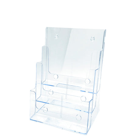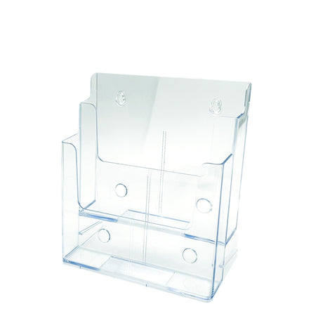 Display-Wholesale.com offers a wide selection of Letter Size and Tri-Fold Brochure Holders in 1, 2, 3 and 4 pocket models. Made from attractive clear acrylic, these inexpensive Brochure Holders are an inexpensive solution for presenting your printed materials such as brochures, pamphlets, flyers, magazines, catalogs, and booklets. They’ll help keep your office or display space organized and free from clutter, thus making a better advertising impression and increasing the chances of doing future business with your audience. Pockets are each set back so every title in a multi-pocket holder can be clearly seen. These Brochure Holders are designed for either flat mounting on tables or desktops, or easy wall mounting.