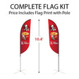 Our Small Double Sided Feather Flag Kit includes the flag pole and custom printed double-sided feather flag. After assembly, the standing height is 10.4 ft tall for your advertising needs.