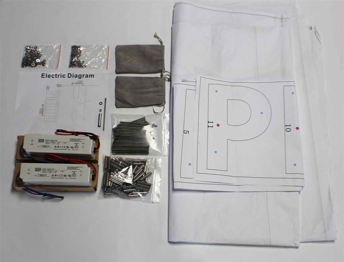 - Including Power Supplies, Electrical Wiring Diagram, Installation Pattern, Steel Studs, Spacers, Washers and Hex Nuts