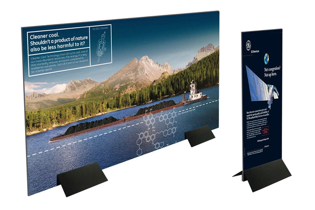 With black powder-coated steel construction, this Floor Mount Sign Holder is able to hold up to 1" rigid materials. It is versatile to be used for table-top and floor standing signage.